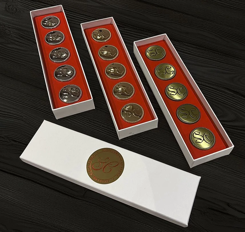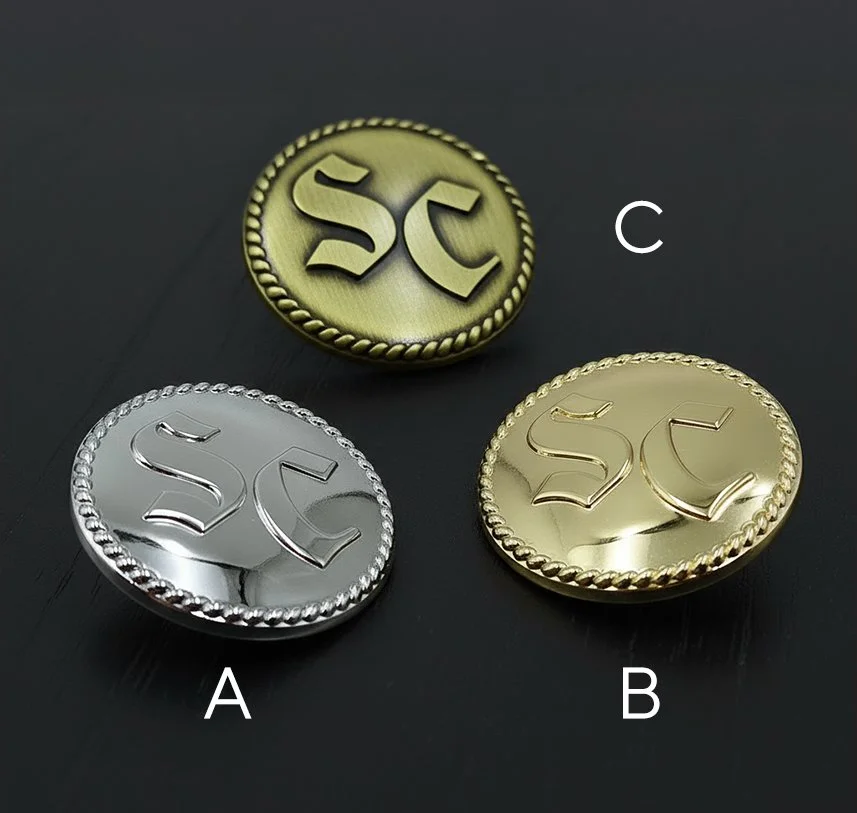 Exclusive to Santa Claus Creations, these luxury 1 ¼" buttons feature a distinguished ‘SC’ monogram. Beautifully crafted and available in 24ct Gold Plate, Nickel Plate and Antique Brass, each button has a sturdy shank for secure attachment.